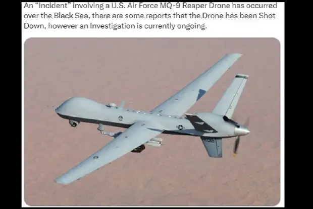 С американским БПЛА MQ-9 Reaper, совершавшим полёт над Чёрным морем, произошёл "инцидент" во время полёта. По утверждениям источников, разведывательный летательный аппарат был сбит. В сообщении AFP со ссылкой на американских военных утверждается, что Reaper был сбит самолётом из России.